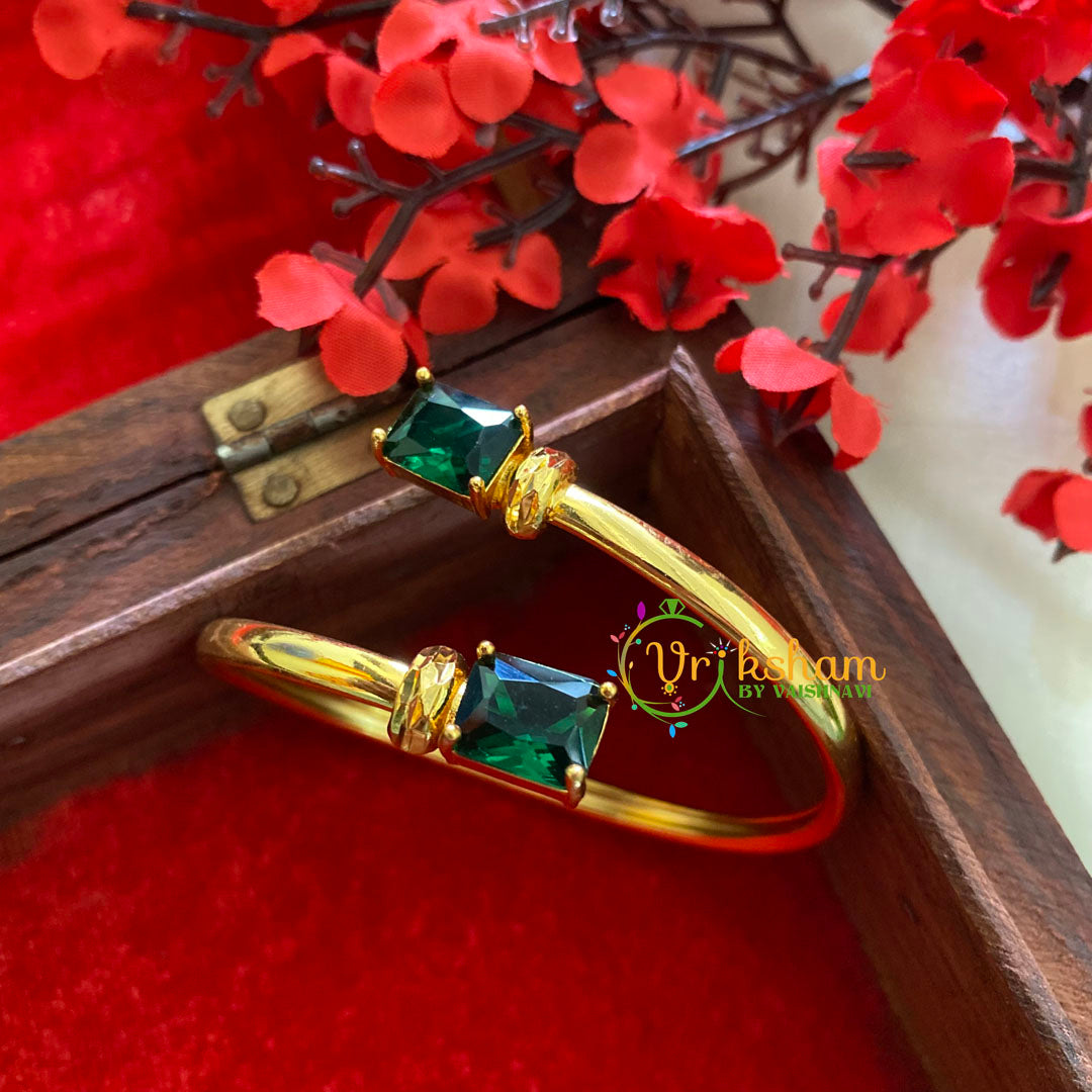 Gold Look alike Green stone Bracelet-Gold Tone- two sided green stone openable bracelet.