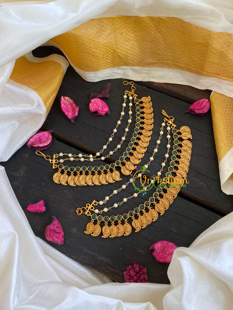 Maanga maatil 3 Layered Matt finish -Pearl layered green cz stone studded maatil/maatal.