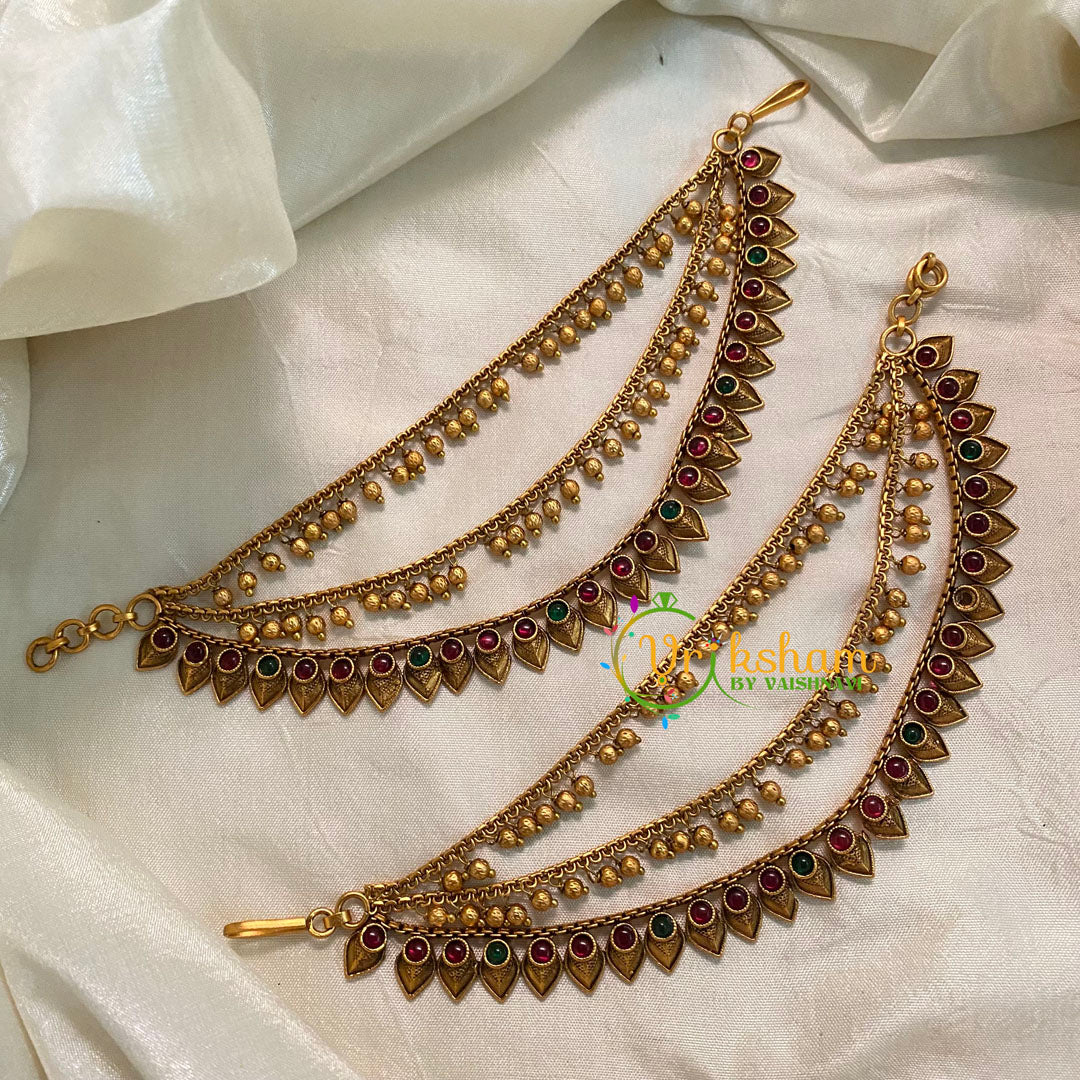 Maanga maatil 3 Layered Matt finish -Ghungroo layered red green cz stone studded maatil/maatal. Premium matt finish.