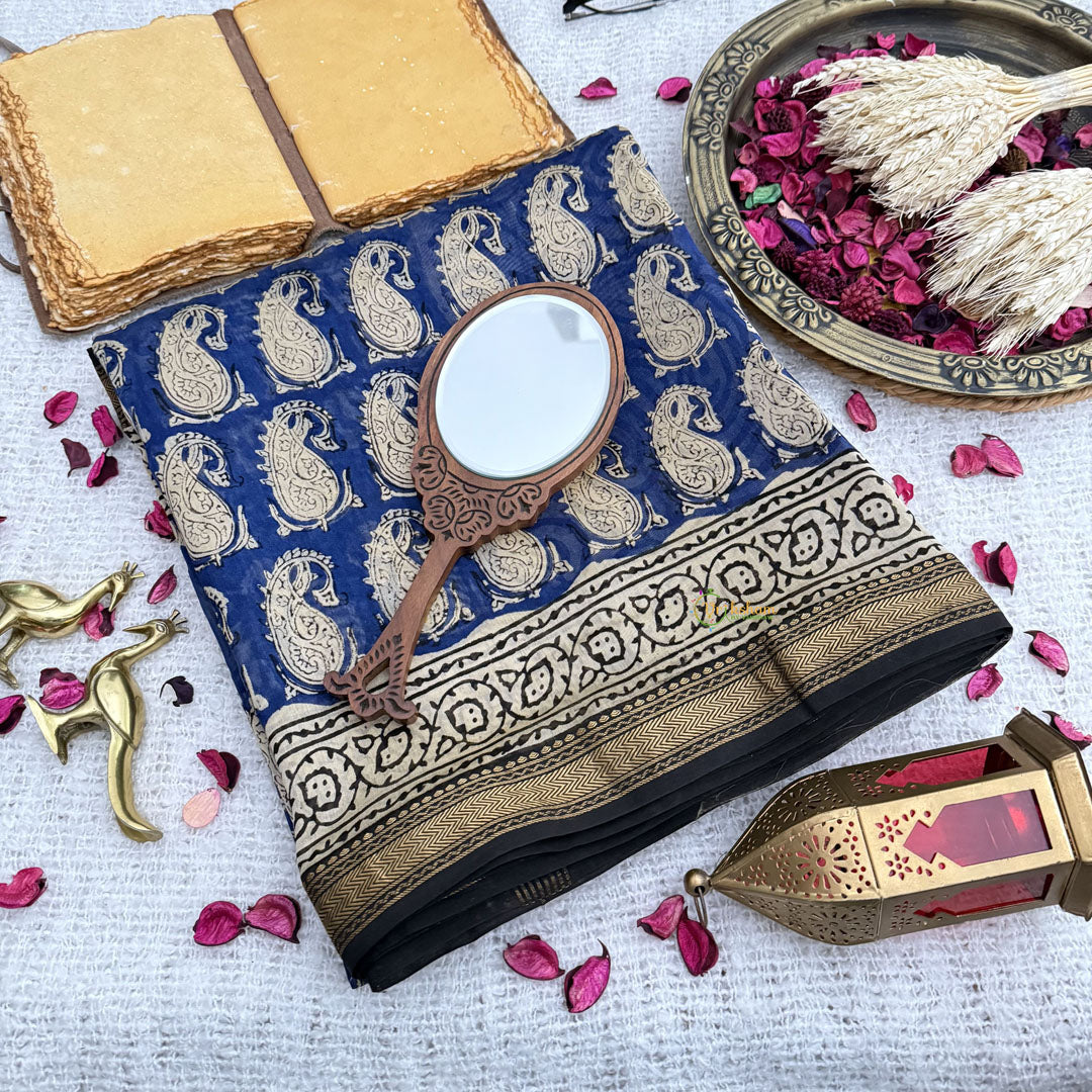 Dark Blue Maheshwari Cotton Silk Saree -Handloom Maheshwari Saree-VS3642