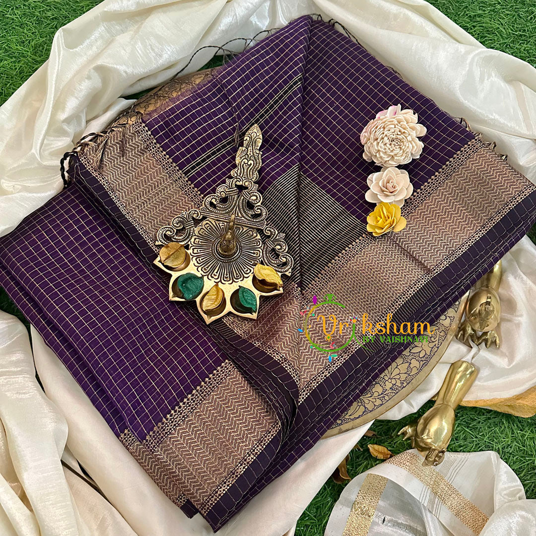 Purple Kattam Maheshwari Silk Cotton Saree - Festive wear saree ; comes with Blouse attached. Two side border and pallu.
