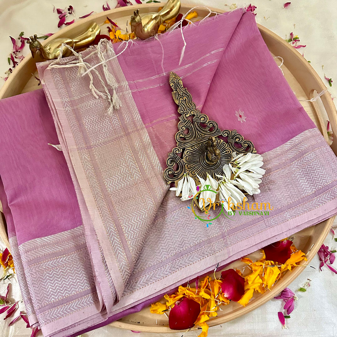 Dark Onion Pink Maheshwari Silk Cotton Saree - Festive wear saree ; comes with Blouse attached. Two side contrast border and pallu.