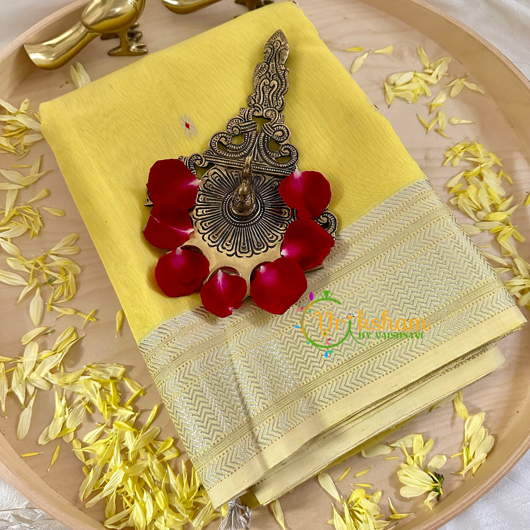 Light Yellow Maheshwari Silk Cotton Saree - Festive wear saree ; comes with Blouse attached. Two side contrast border and pallu.