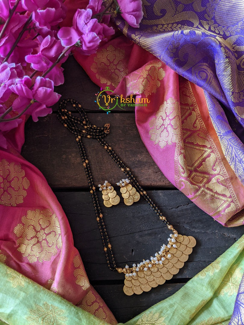Mangal Sutra Style Pendant (Coin style) - This has the Layer Coin style pendant which is a gold look alike pendant and comes with earrings. This type of mangal sutra is a common amoung the Northern parts of India. The Mangal sutra is having a black beads style chain.