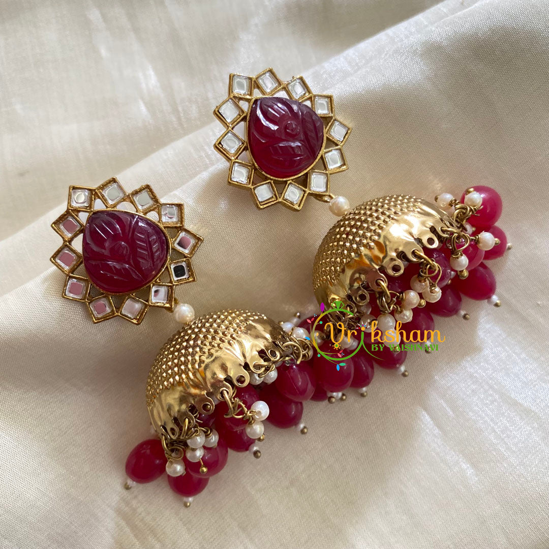 Maroon Meenakari Jhumkas-Hand painted-Fancy Stone Stud with hand painted Jhumkas base. Bead and Pearl finish. Medium size.