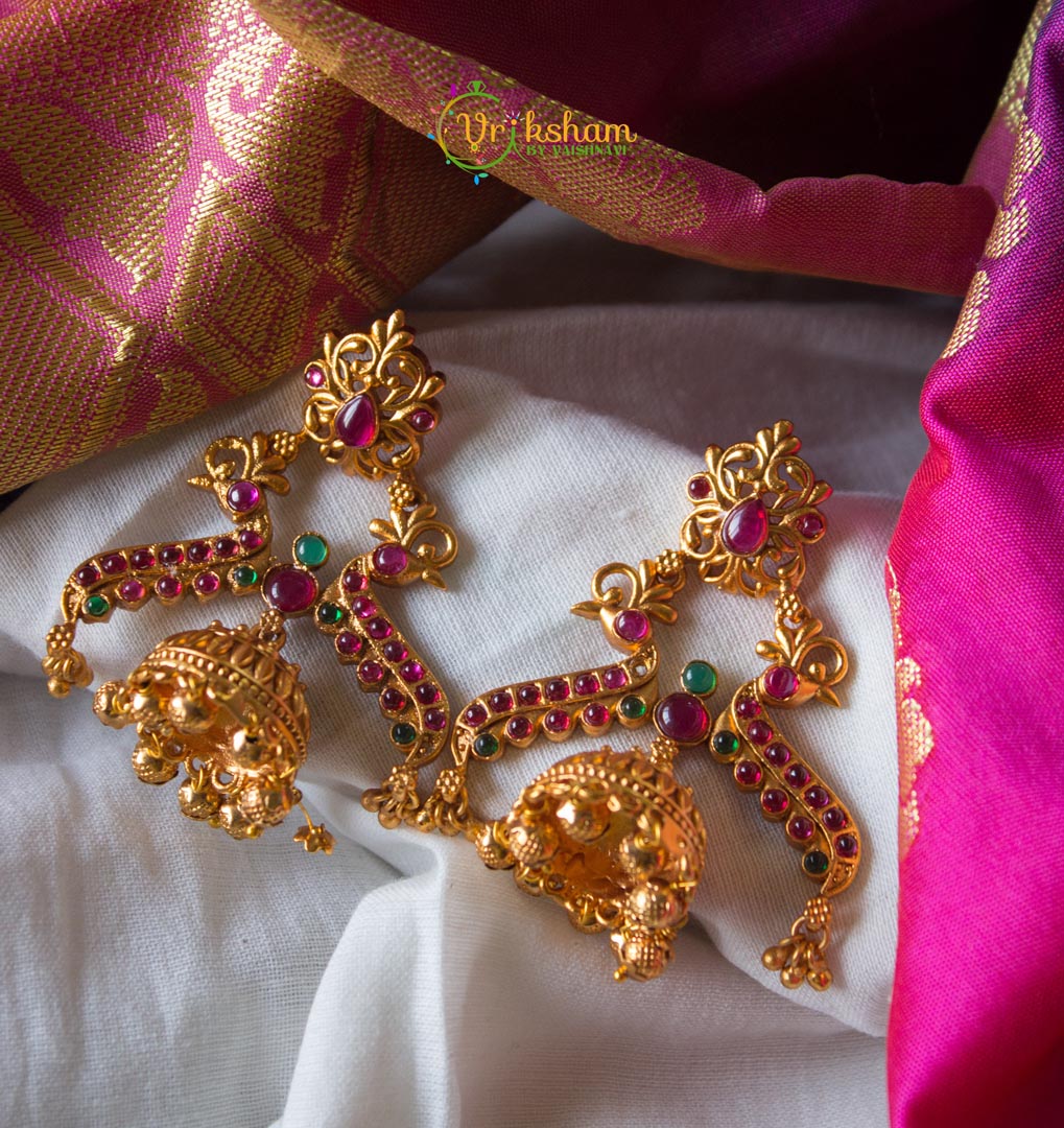 This Matt Kemp Jhumkas with Red and Green Stones are made of copper and brass.