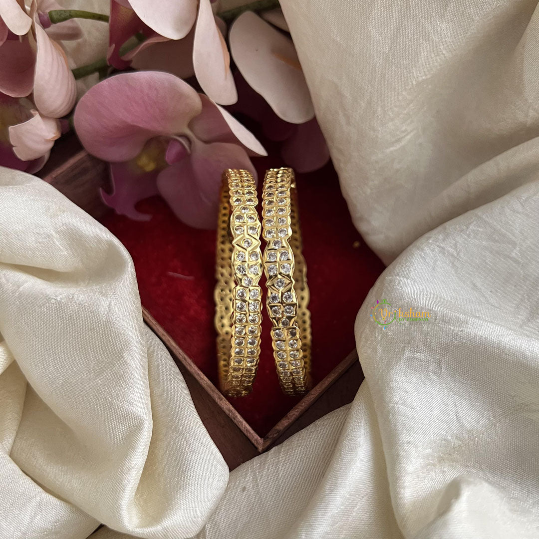 Micro Polish White AD Stone Bangle Set - AD Stone studded festive bangles , Comes as pair only.