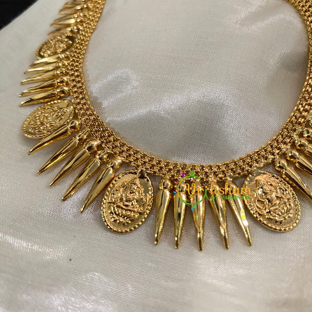 Gold Look Alike Kerala Mullai Mottu Kaasu Neckpiece -No Stone Long Neckpiece-Sharp spike pattern; NECKPIECE ONLY