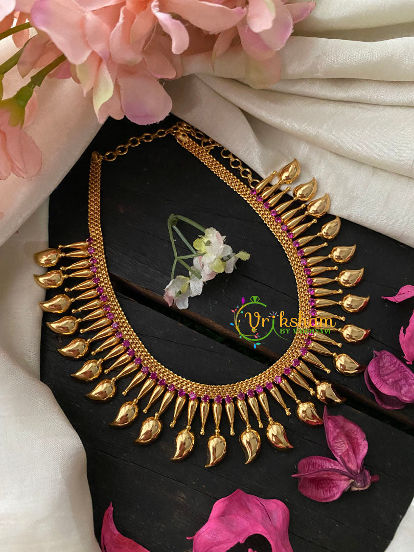 Traditional Mullai Mottu Maanga Neckpiece-Pink Stone Neckpiece- Paisley pattern Traditional Kerala jewelry; NECKPIECE ONLY