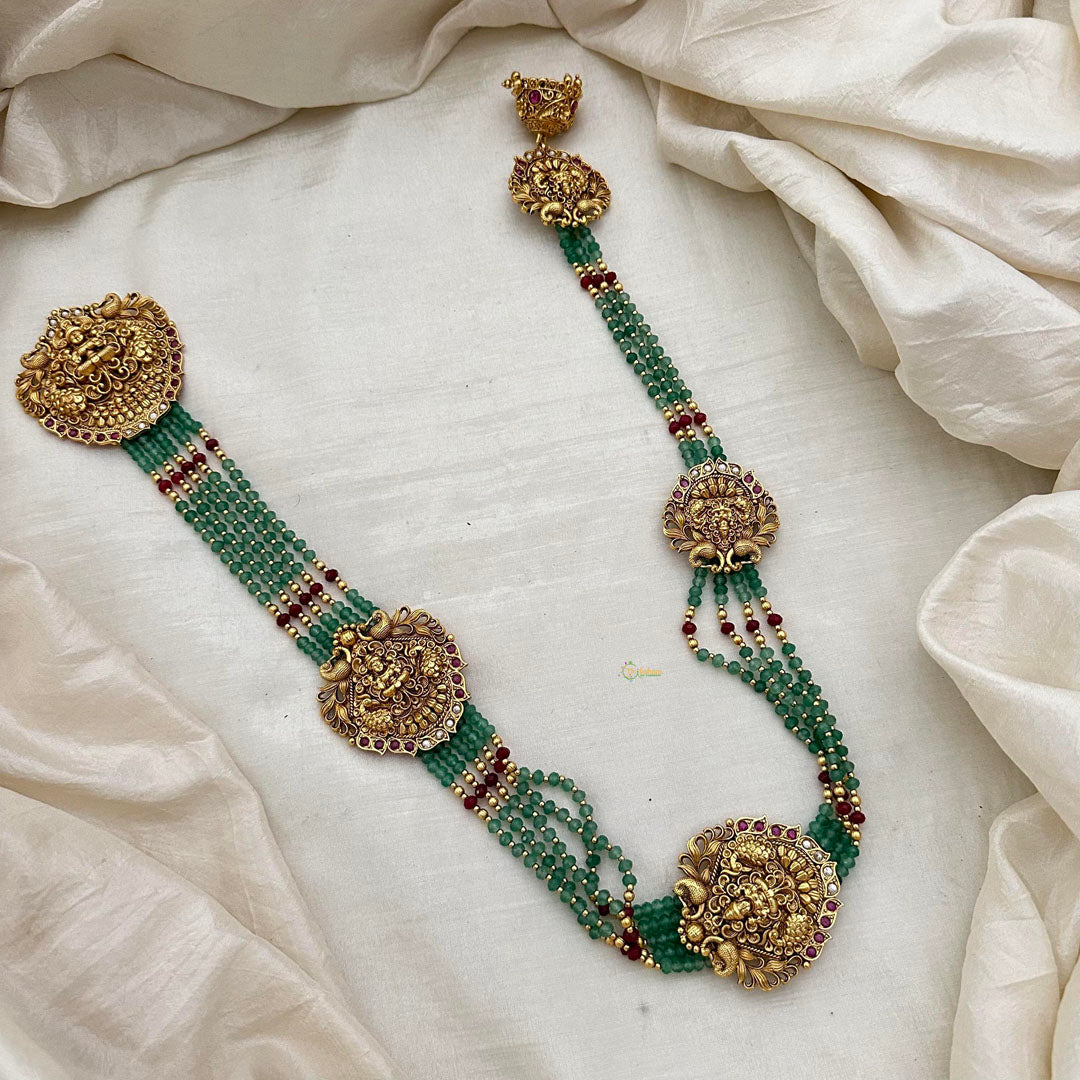 Multilayer Lakshmi Jada Billai Bridal Hair Accessory-Red Pastel Green Beads-G13127
