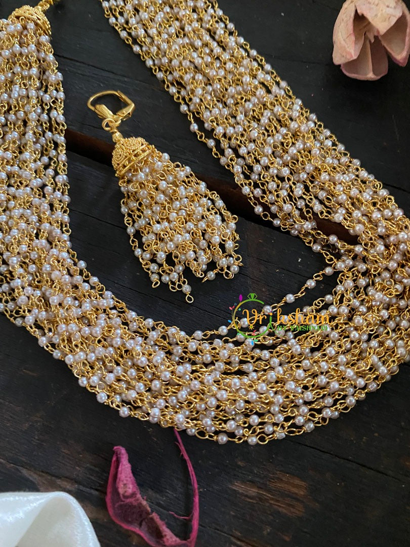 Multilayered Pearl Malai-Round Tiny Pearls-No pendant; medium sized beads of pearls Neckpiece only.