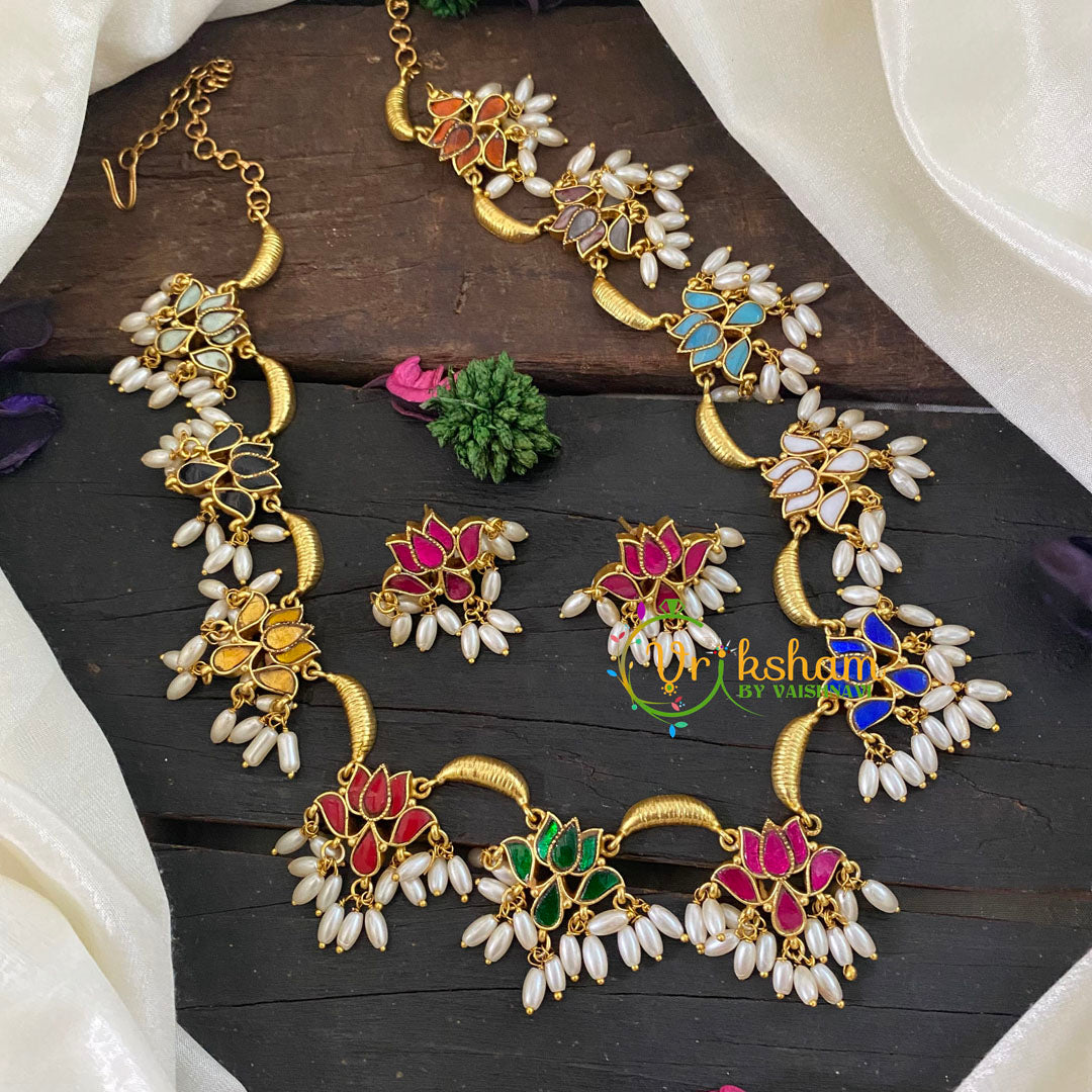 Navrathna Jadau Kundan Guttapusalu Neckpiece - NO pendant – Premium quality polish with precious kundan work of lotus pattern.