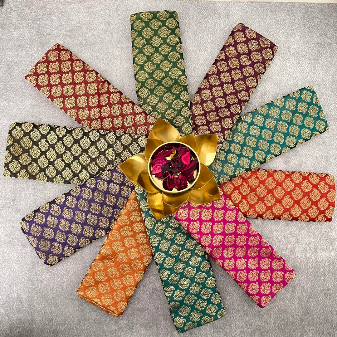Elevate your Navrathri style with our luxurious multicolor unstitched blouse bits. Crafted from jacquard brocade fabric, these blouse pieces feature exquisite golden zari peacock butta designs. A perfect gift for the festive season, add a touch of elegance and exclusivity to your wardrobe. Set of 10 pieces.