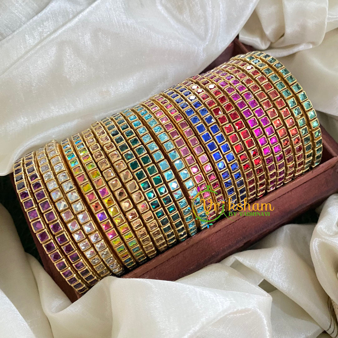 Navrathri Return Gift Package -Silk Thread Kundan Bangles Set 4- set of 12 different color bangles - each 2 pieces. Comes as full set only.