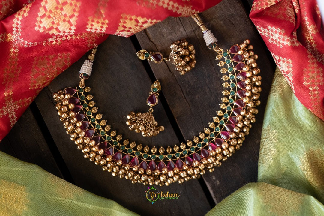 Nayanthara Darbar Choker Red-Green with earrings