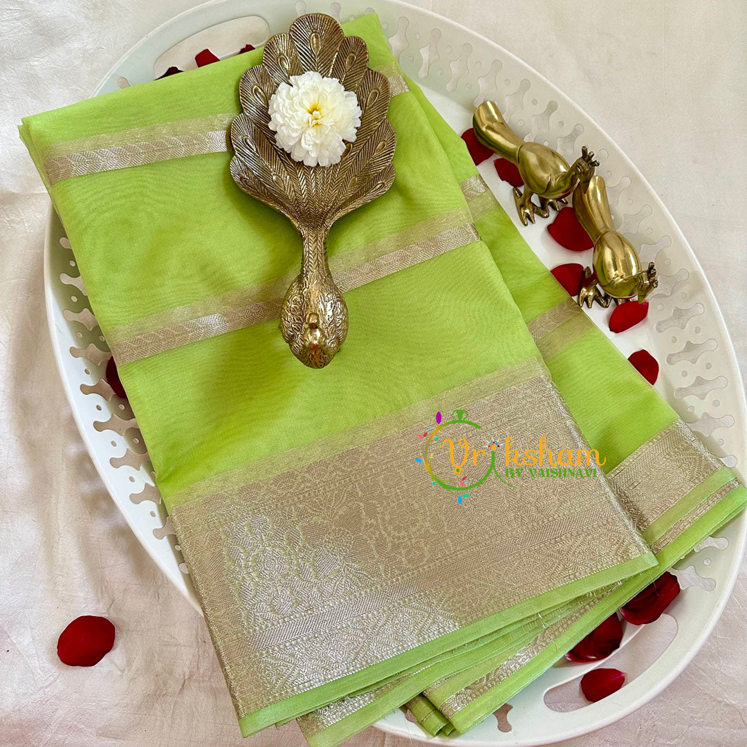 Neon Green with Silver Banarasi Kora Organza Silk Saree-VS2249