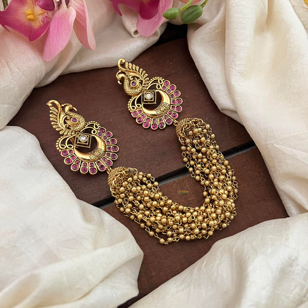 Enhance your traditional look with our One Stan Peacock Jada Billai! This stunning hair accessory features a beautiful golden pearl Maatil-Bun Billai in a vibrant shade of red. Elevate your style and make a statement with this unique and timeless piece.