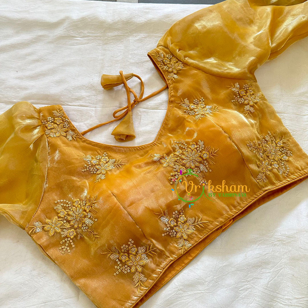 Premium Yellow Organza Designer Readymade Blouse  -VS3074