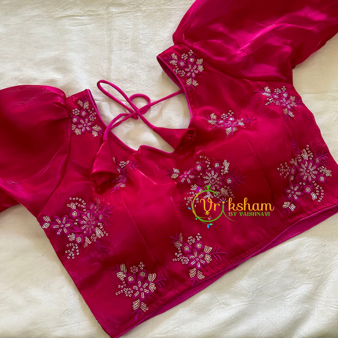 Premium Rani Pink Organza Designer Readymade Blouse  -VS3079