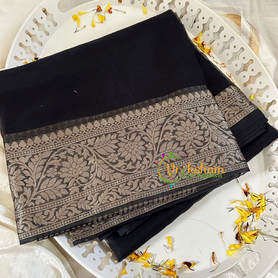 Organza Saree - Plain saree; comes with Blouse attached. Traditional border and pallu.