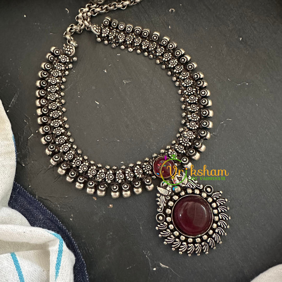 Oxidized Kolhapuri Short Neckpiece -red stone pendant versatile neckpiece; NECKPIECE ONLY.
