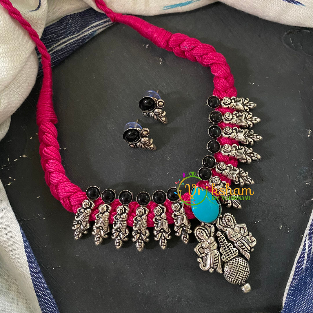 Kolhapuri Oxidized Silver Rope Neckpiece – thread silver look alike, stone or charms patterned silver look jewelry, comes with earrings.