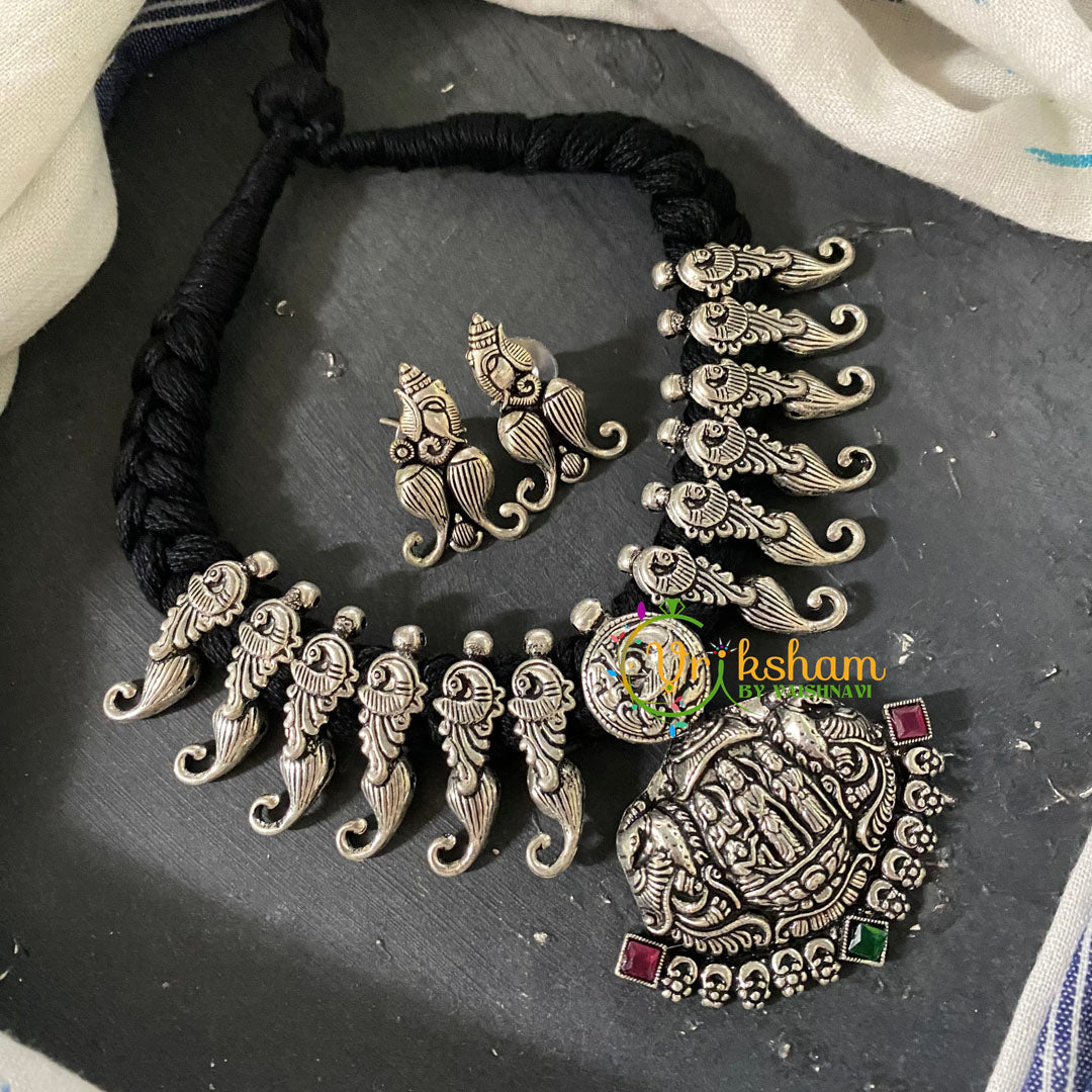 Kolhapuri Oxidized Silver Rope Neckpiece – thread silver look alike, stone or charms patterned silver look jewelry, comes with earrings.