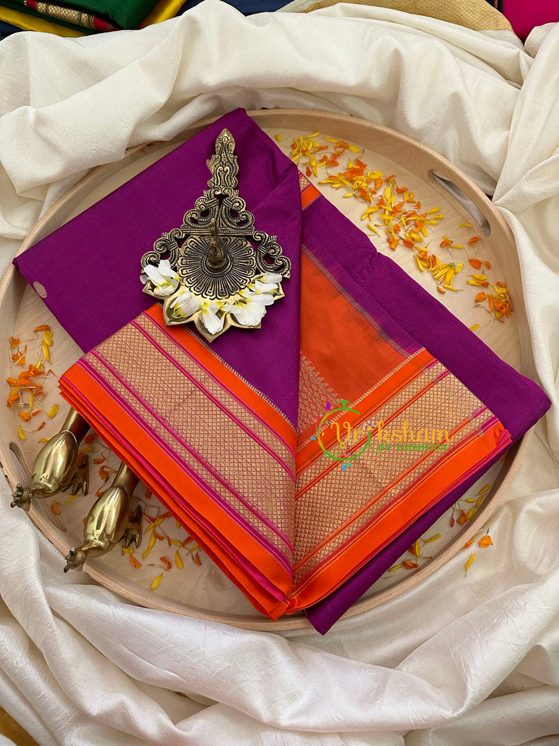 Majanta with Orange Border Paithani Pure Silk Saree – Comes with SILK MARK - Festive wear saree –Paithani Butta work throughout the saree; comes with Blouse attached. Traditional contrast border and pallu.