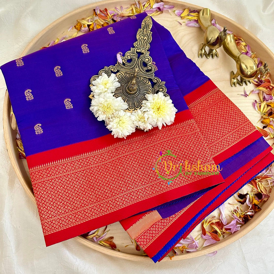 Paithani Soft Silk Saree – Festive wear saree –Paithani Butta work throughout the saree; comes with Blouse attached. Thread work two side traditional border.