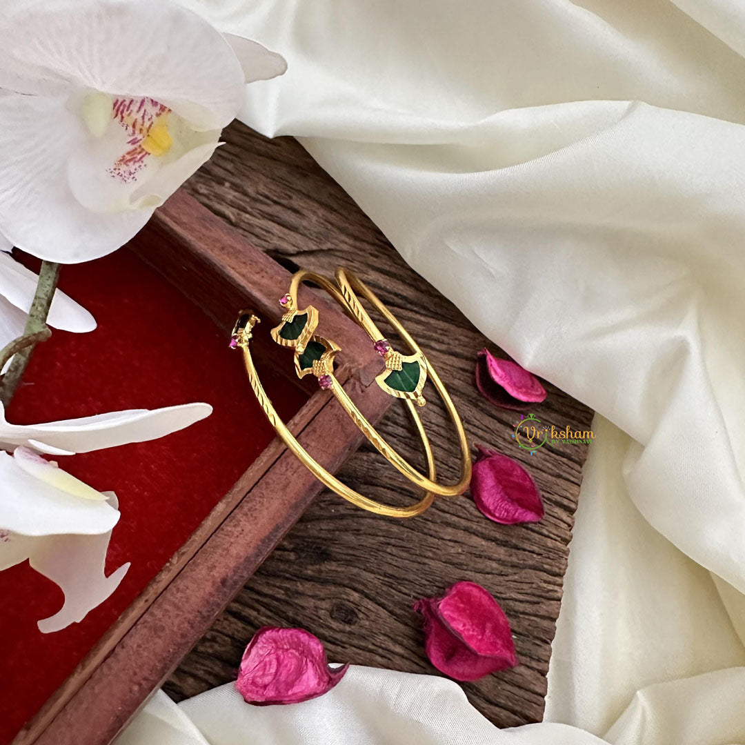 Palakka Bangles -Kerala Style Bangles-Green–Kada type openable stretch open bangles with Green Enamel Color ends; comes as a pair only.