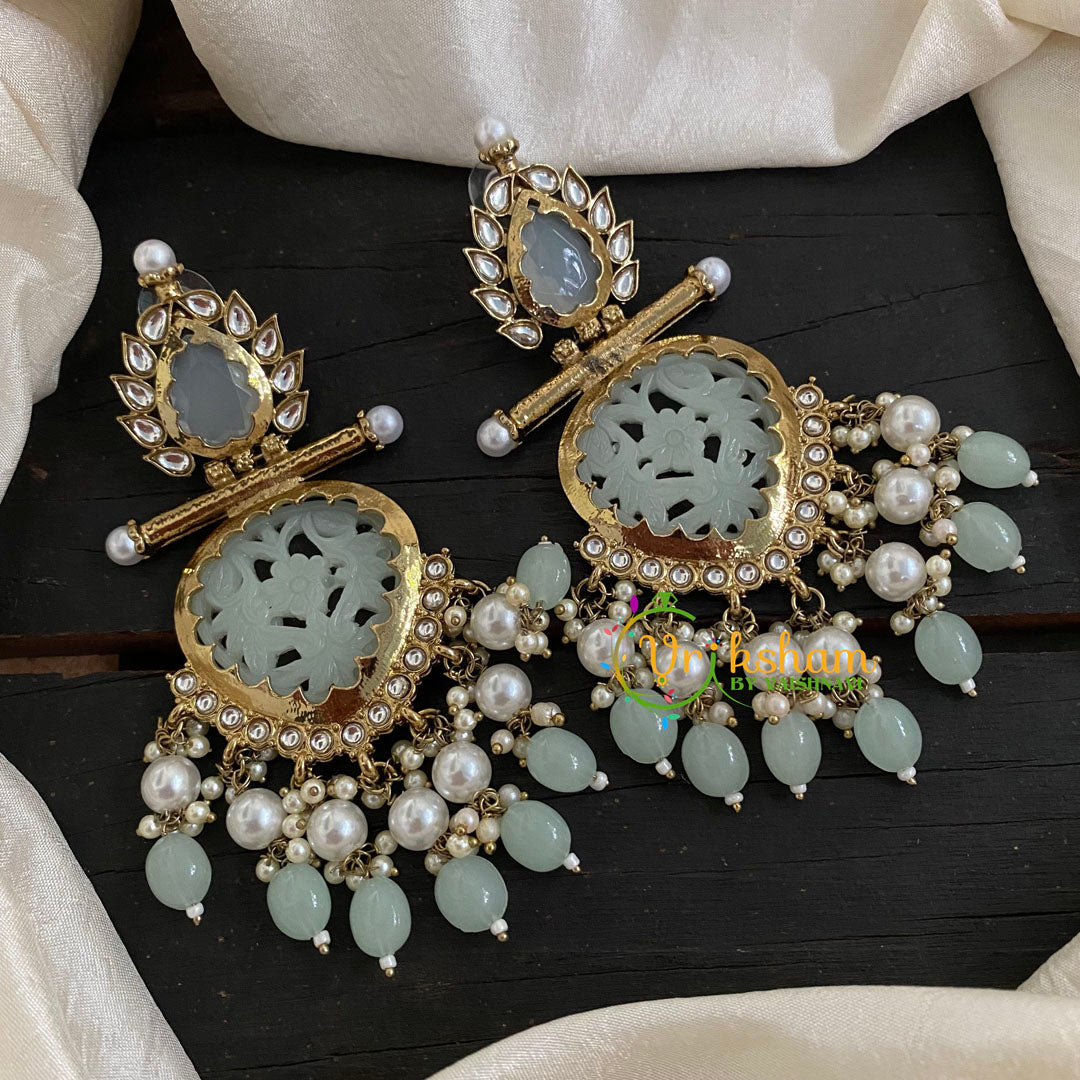 Pastel Green Meenakari Danglers - festive danglers -Meenakari Earrings -semi precious stone set; bead finish danglers.