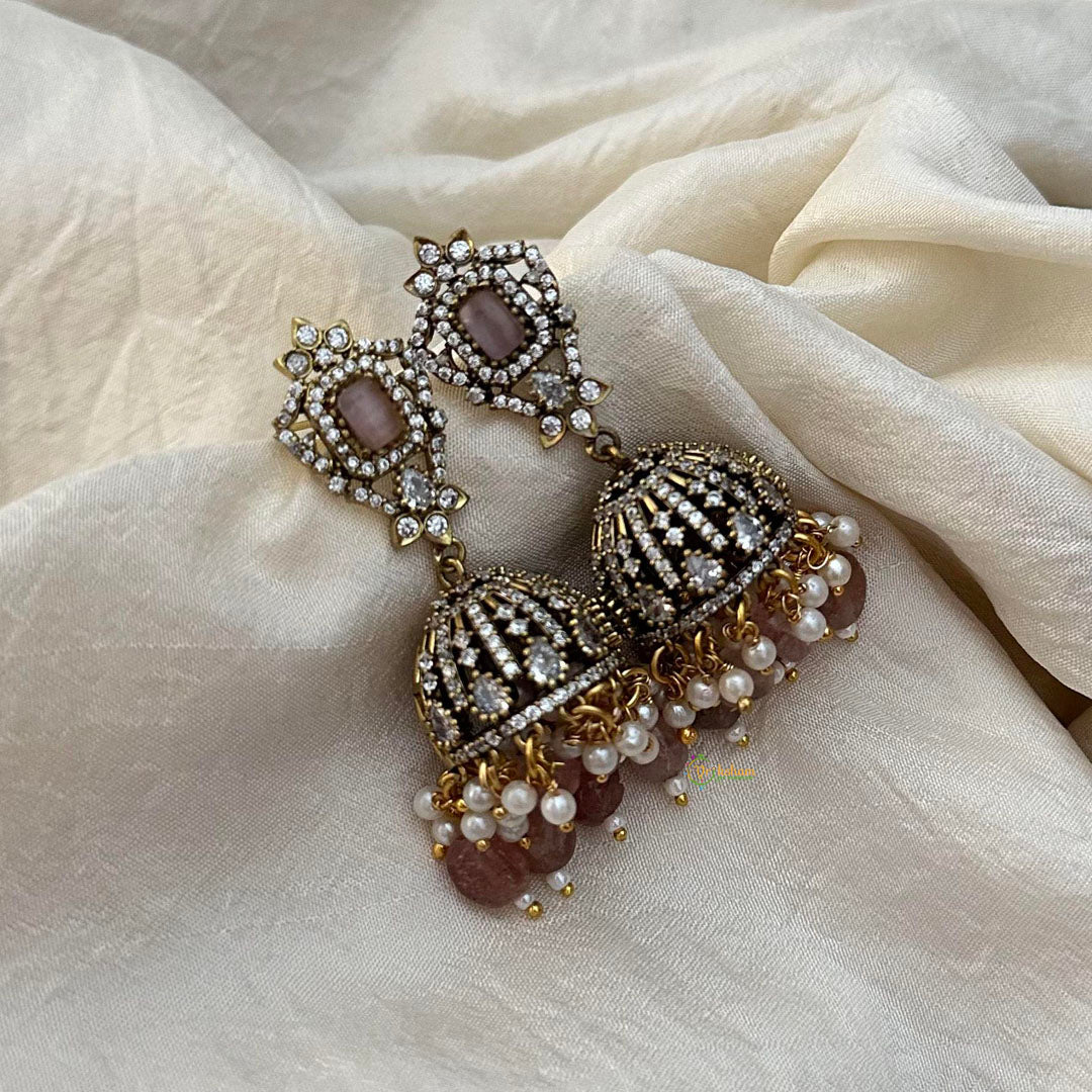 Victorian Diamond Jhumkas - festive Jhumkas - Victorian Diamond Earrings -semi precious stone set jhumkas.