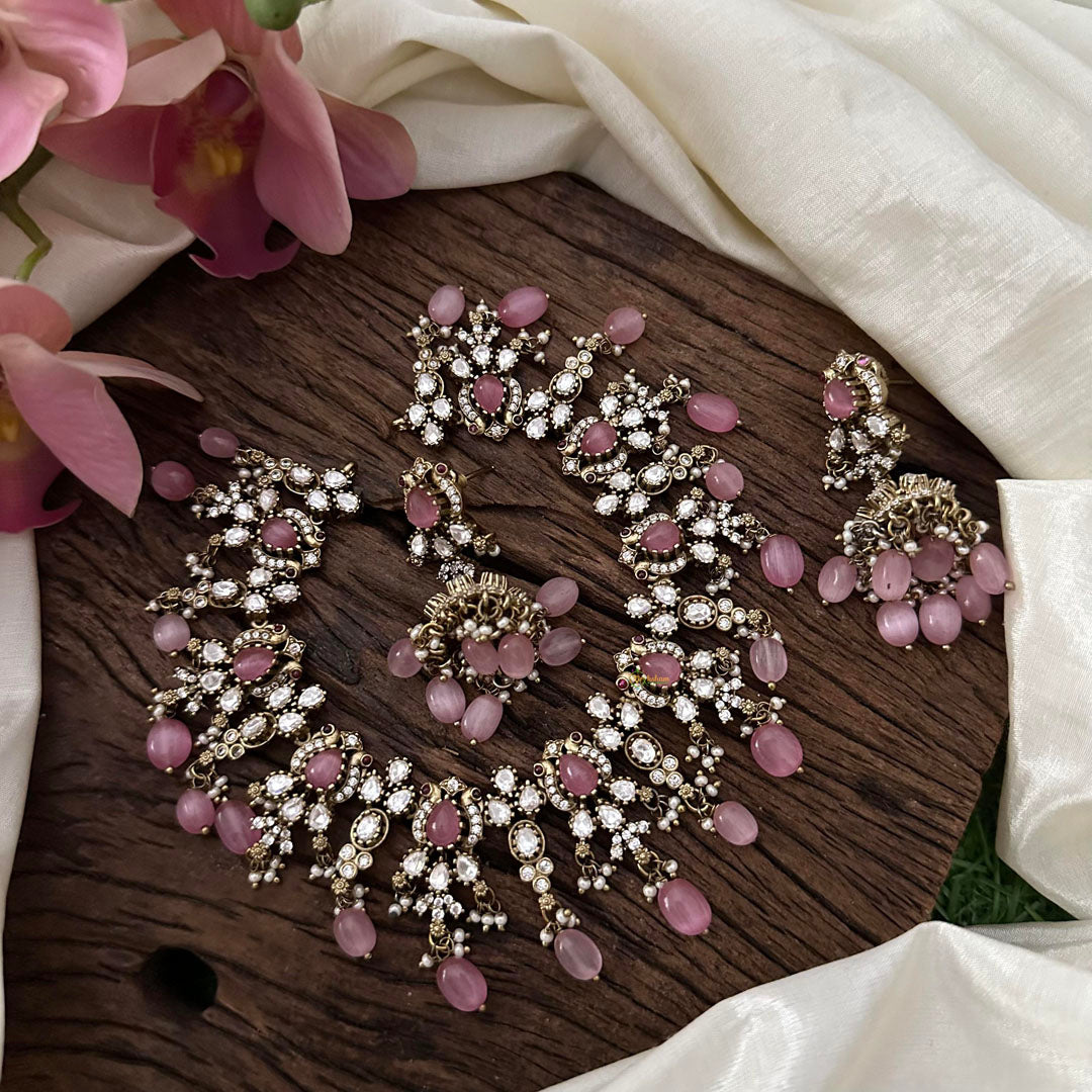 Add a touch of elegance to your outfit with our Pastel Pink Victorian Diamond Short Neckpiece. With delicate beads and a charming Victorian design, this neckpiece is perfect for any occasion. Feel confident and stylish with this stunning accessory. Comes with matching earrings.