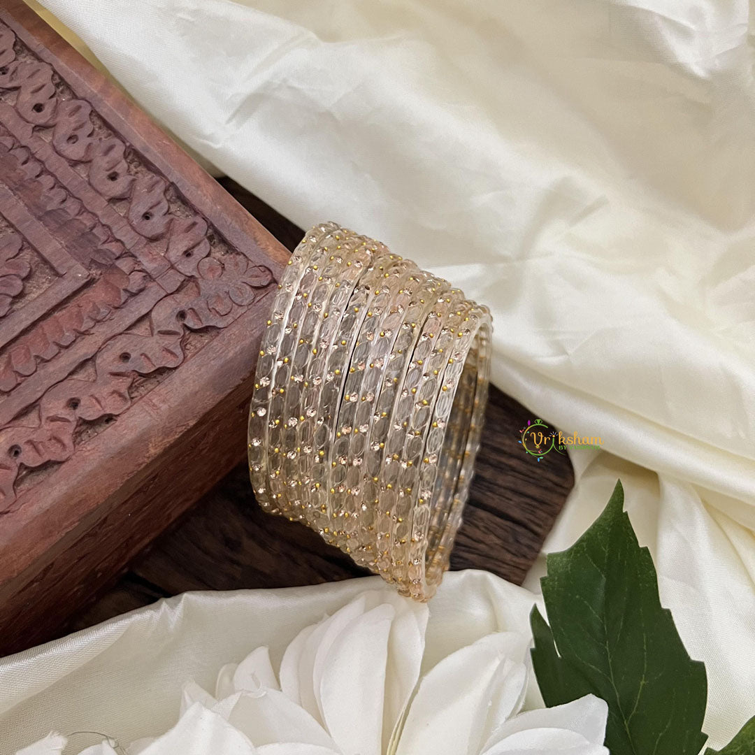 Enhance your wrists with these exquisite MD Thin Glass Bangles. This set of 12 is crafted with premium glass, offering a lightweight and elegant feel. The bangles add a touch of luxury with their thin design, perfect for any occasion. Elevate your style with this stunning collection.