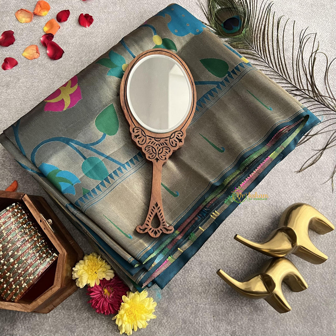Introducing the exquisite Peacock Blue All Over Minakari Work Paithani Saree, crafted with precision and artistry. Adorned with intricate minakari and elegant muniya borders, this saree exudes luxury and sophistication. Elevate your style with this timeless piece, perfect for any occasion. Experience the finest in traditional Indian fashion.