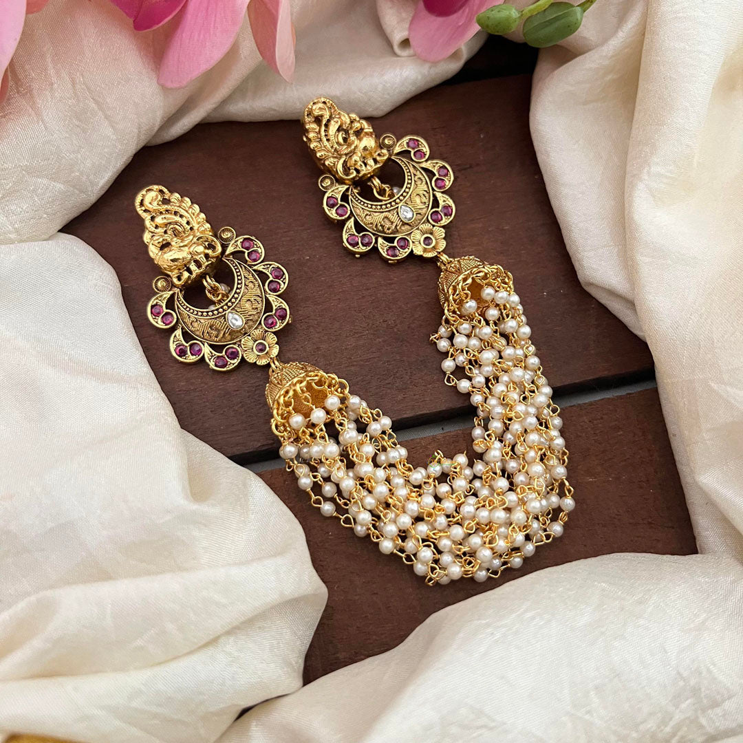 Elevate your traditional look with our Peacock Jada Billai! Handcrafted with red stones and pearls adorned on Maatil-Bun Billai, this statement piece will add a touch of elegance to your outfit. Perfect for any occasion, embrace the beauty and charm of our Peacock Jada Billai!