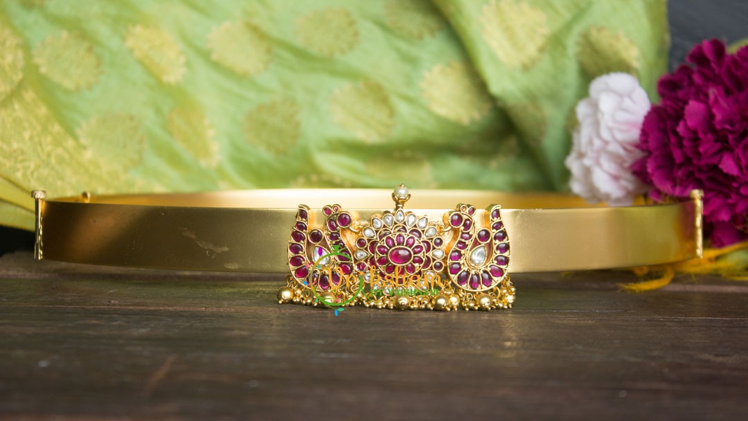 Exquisite Peacock Pendant Hipbelt - predominantly Red stone with white stone -Simple elegant peacock pattern design centre piece plain Hipbelt.