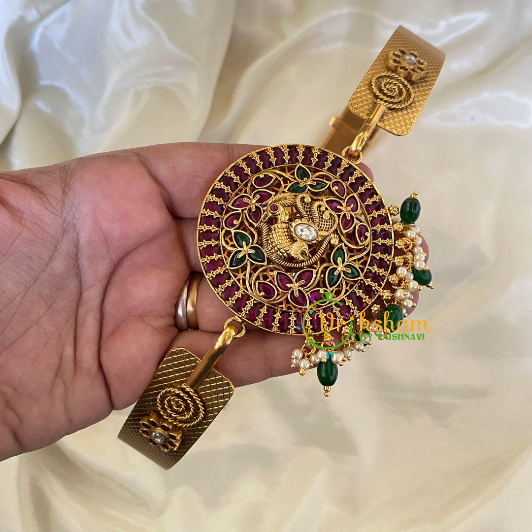 AD Stone Peacock Pendant Plain Hipbelt– Gold Look alike Hipbelt with green and red imitation stone and embossed plain hipbelt.