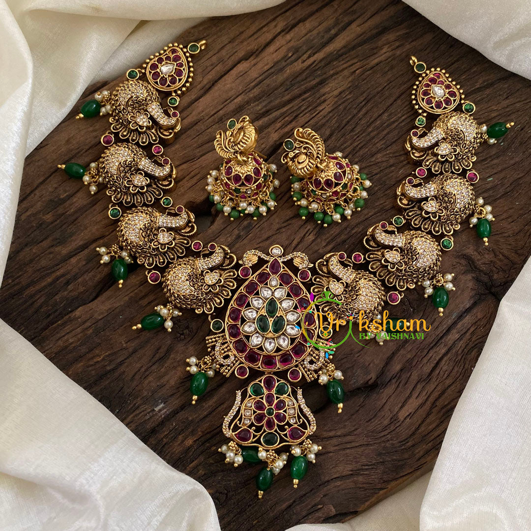 For more such pieces visit, https://vrikshamindia.com/product-category/golden-jewellery/short-neckpieces/