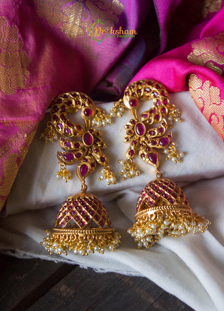 MAKE MATERIAL – This beautiful Peacock Precious Kemp Big Jhumkas is made of copper and brass with Precious Kemp Stones