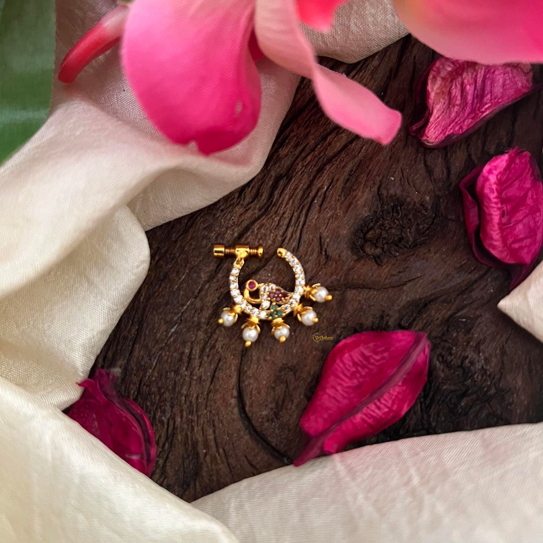 Peacock Red Green White AD Stone Nath / Nose pin-Pearl-G13890