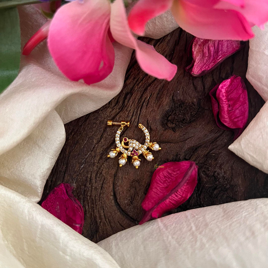 Peacock Red White AD Stone Nath / Nose pin-Pearl-G13889