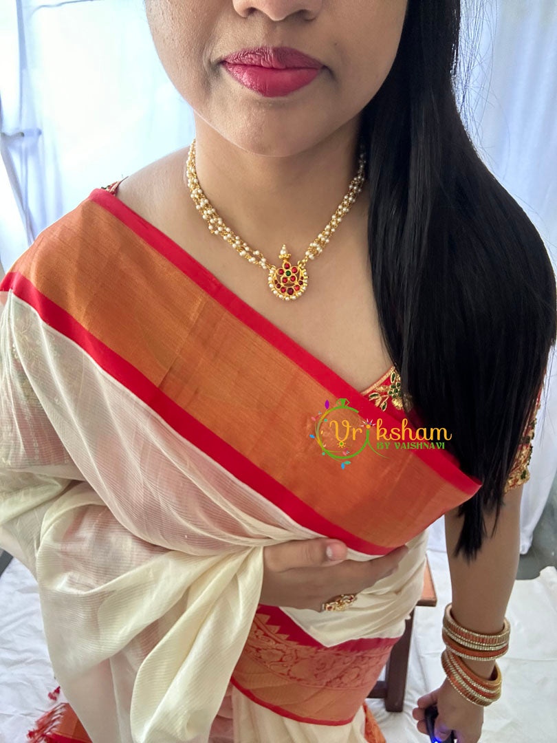 Make Material: Chandran Pendant Pearl Style Short Neckpiece is made of iimitation kemp stones and pearls, copper brass alloy.