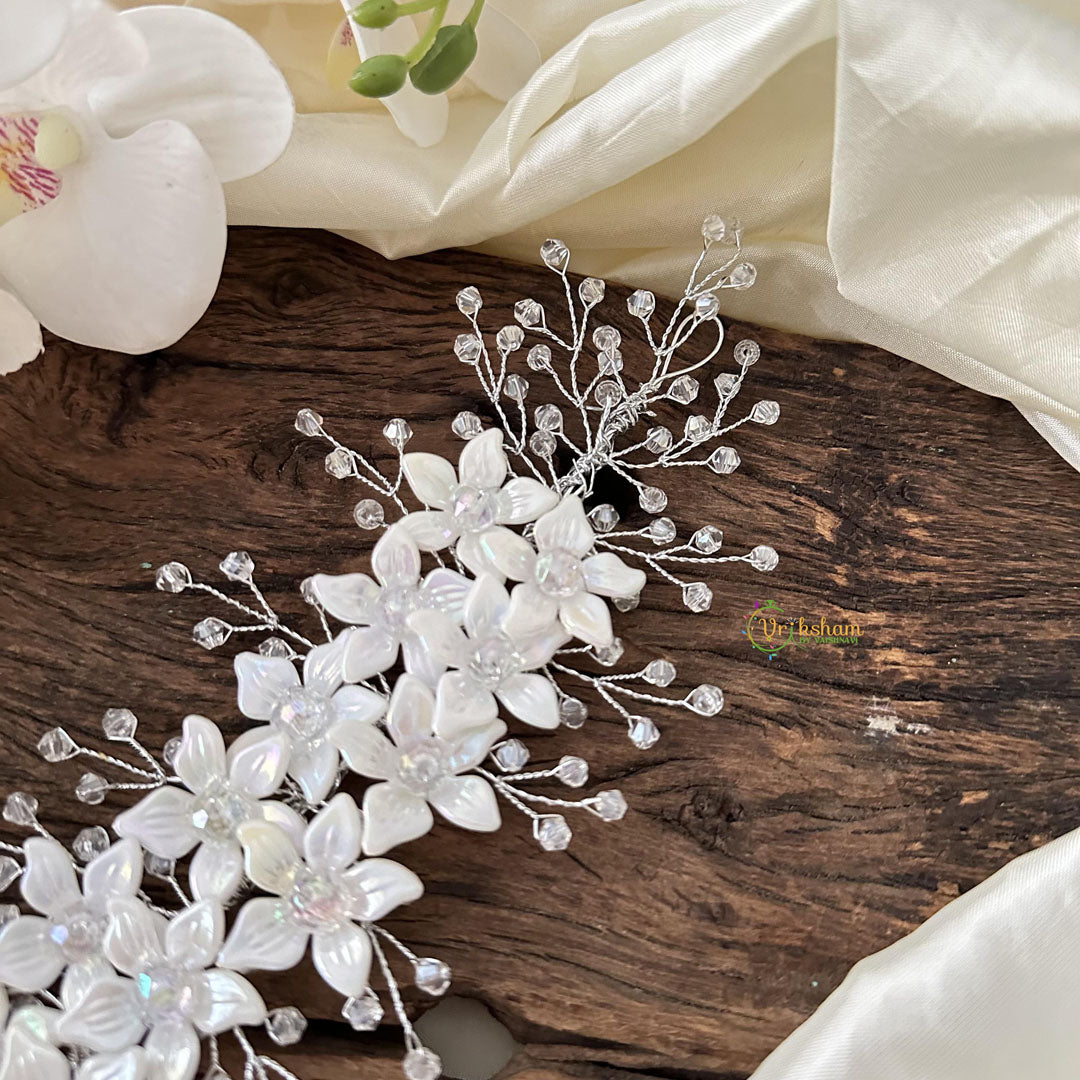 Elevate your bridal hairstyle with our Pearls with Flower Bun Juda Bridal Brooch. This stunning accessory features delicate pearls and intricate flower detailing, adding a touch of elegance to any look. Perfect for a romantic updo or a bohemian bun, this brooch will be the finishing touch to your wedding day ensemble.