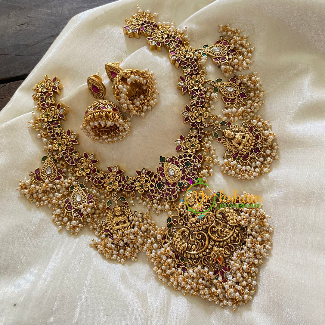 Premium Pendants Lakshmi Short Neckpiece -Guttapusalu Pearls Finish -Intricately Designed Temple Neckpiece, with lakshmi pendants ; comes with matching ear hangings.