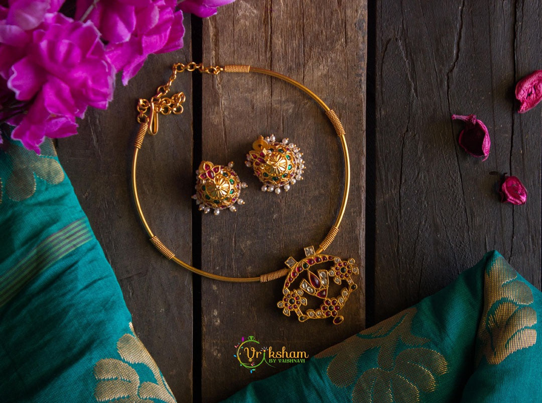 MAKE MATERIAL – This beautiful Perumal Style Choker is made of copper and brass and Kemp stones.
