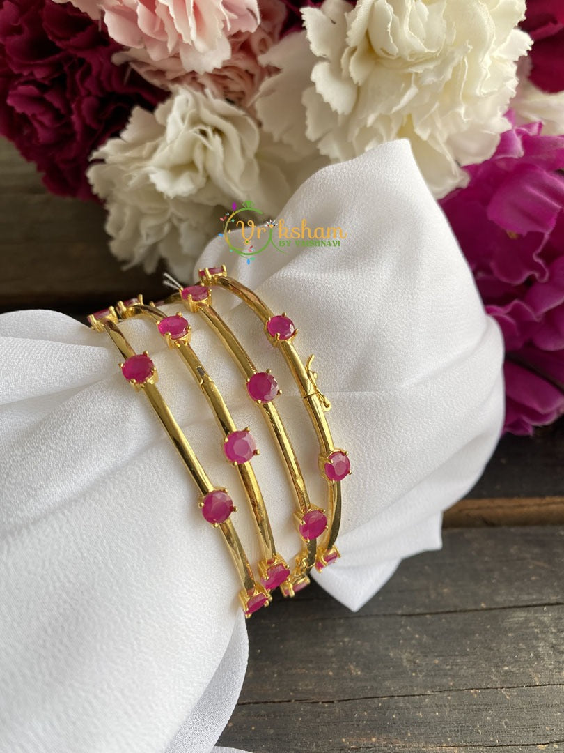 Pink Ad Stone Bangle -4 Bangles – Gold like polish AD stone round pattern. Doesn’t come as individual pieces.