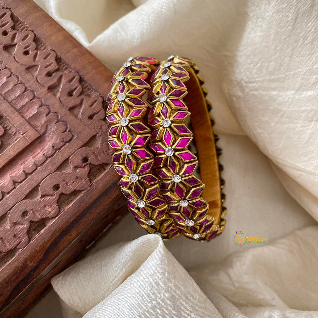 Pink Silk Thread Kundan Bangle -Diced Flower - kundan stone (glossy stone) festive bangles , Comes as 2 bangles only.