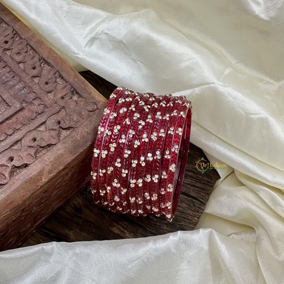 Pinkish Red BKS Thin Glass Bangle-Set of 12-G14463