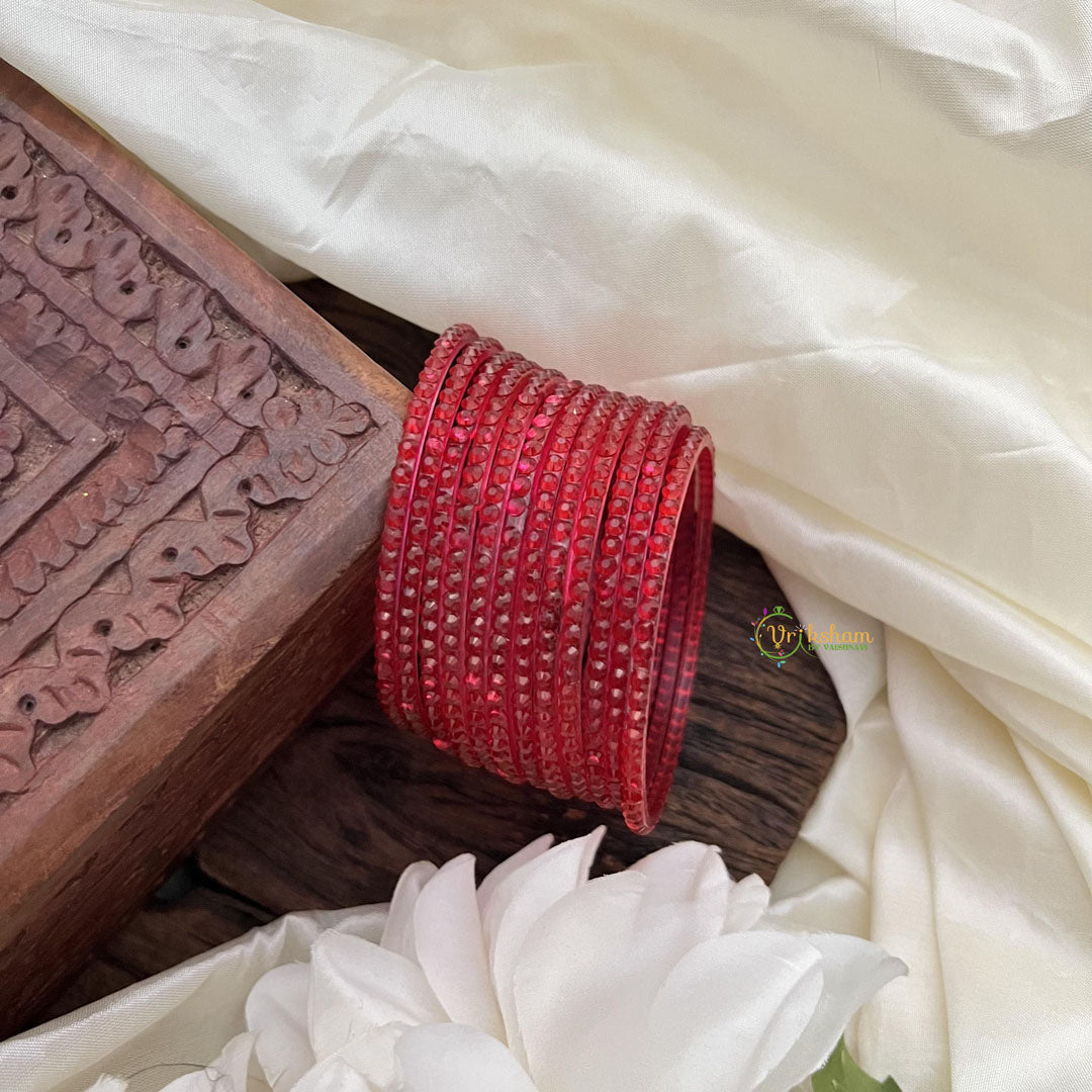 Pinkish Red JS Thin Glass Bangle-Set of 12-G14474